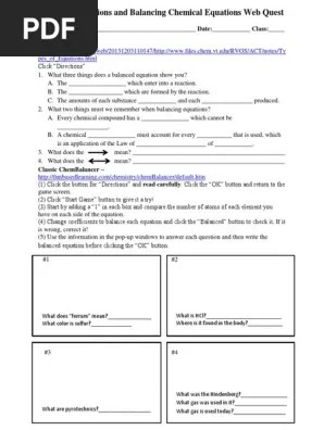 In this virtual lab, students will use the balancing chemical equations phet simulation to balance multiple .